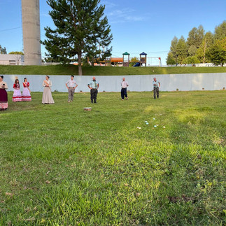 Também foram oferecidas oficinas práticas, como a confecção de artesanato, nós de lenço e esportes gaúchos, permitindo um contato mais próximo com elementos que compõem a identidade cultural do gaúcho.